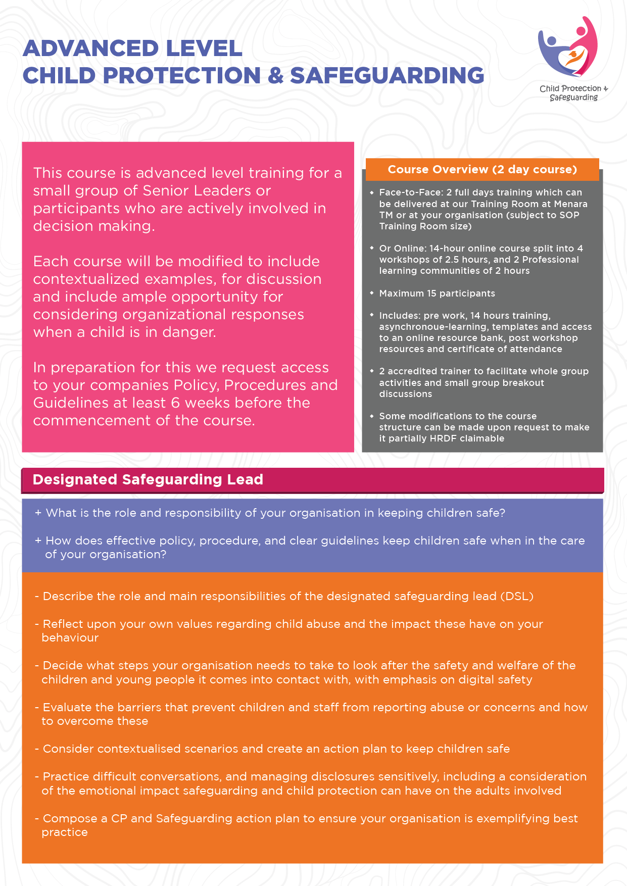 Connect with us for consultancy and bespoke training on Child Protection and Safeguarding for your organisation.